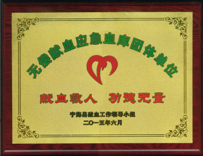 6月14日,是第12個 “世界獻血者日”,在寧海縣慶祝第12個 “世界獻血者日”暨無償獻血應急血庫團體單位授牌儀式上,如意公司被授予 “無償獻血應急血庫團體單位”稱號。