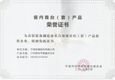 近日,寧波市經信委發文: 為加快寧波市智能裝備產業發展,根據《寧波市裝備制造業重點領域首臺(套)產品認定管理辦法》等文件精神,市經信委會同市級有關部門組織專家對全市各地申報的60余個產品進行了綜合評審及答辯,并向社會公示,共確定首臺(套)產品26個,其中我公司的“CSD四向平衡重式叉車”名列在內。