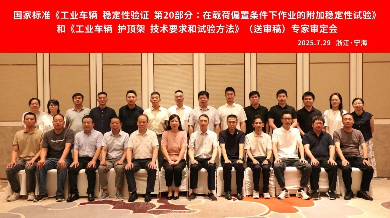 2025年7月29日,全國工業車輛標準化技術委員會(以下簡稱“工業車輛標委會”)在寧波如意組織召開了國家標準《工業車輛 ?護頂架 ?技術要求和試驗方法》和《工業車輛 ?穩定性驗證 ?第20部分:在載荷偏置條件下作業的附加穩定性試驗》(送審稿)專家審定會。