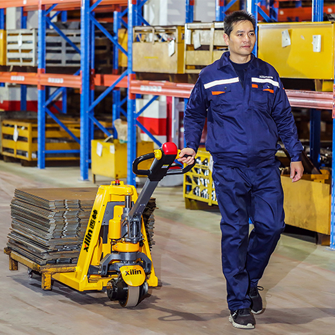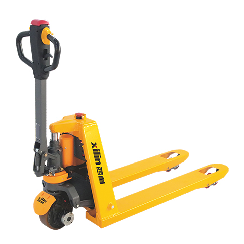 室內采用鋰離子動力托盤車,與手動托盤車大小相仿,轉彎半徑小,超輕,操作方便。