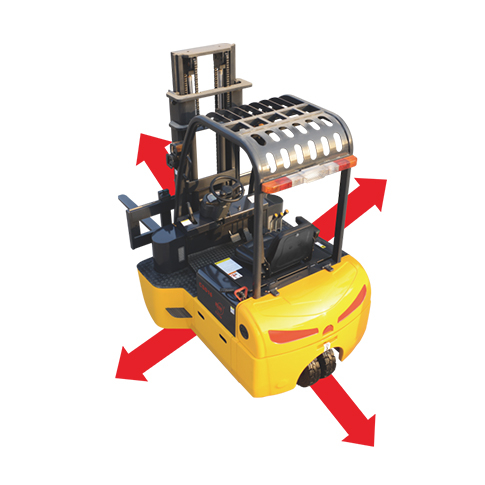 CSD型四向叉車采用雙電機驅動,雙轉向系統,使叉車具備了前后左右四向行駛的功能,操作者可以根據不同的環境和工況,任意選擇合適的功能。
